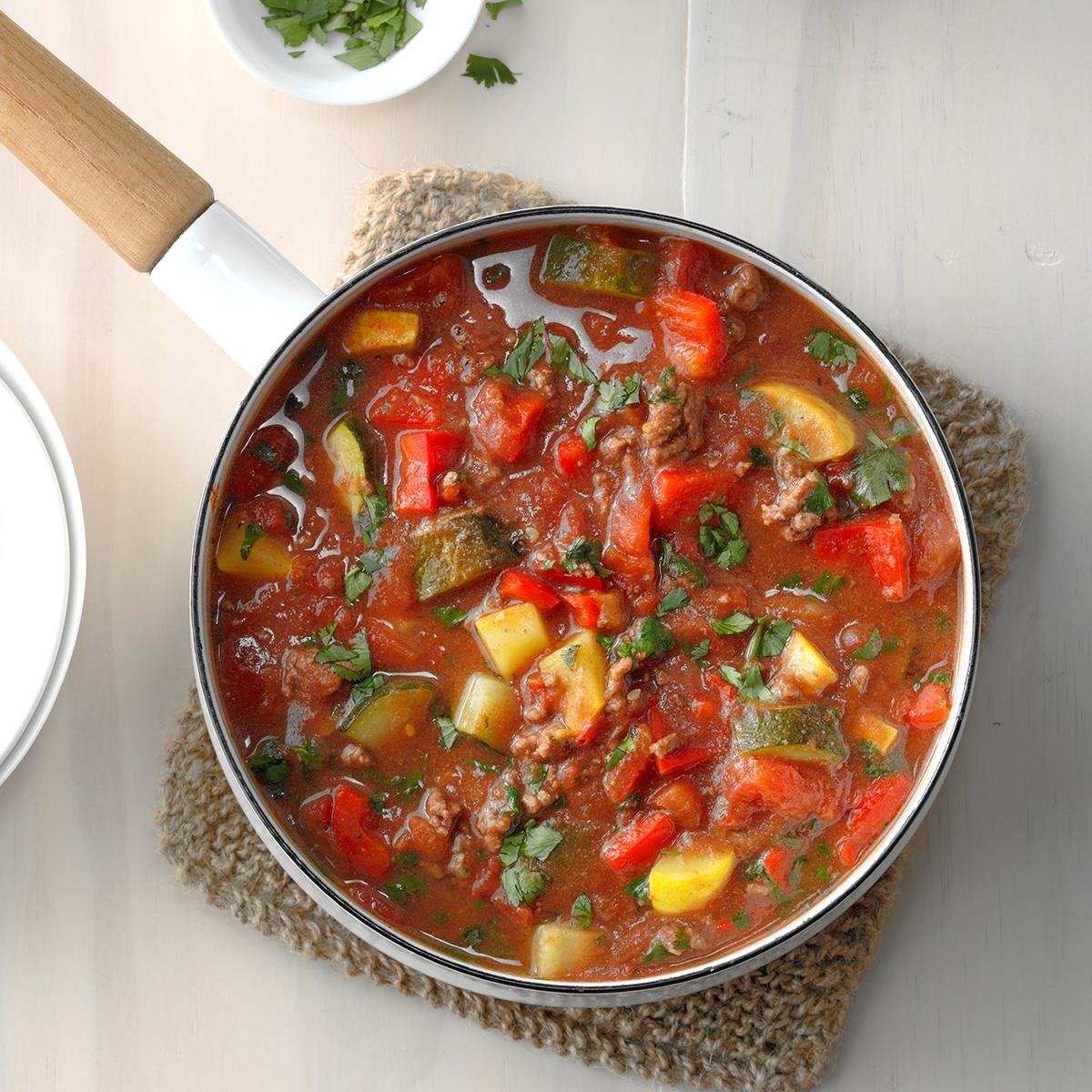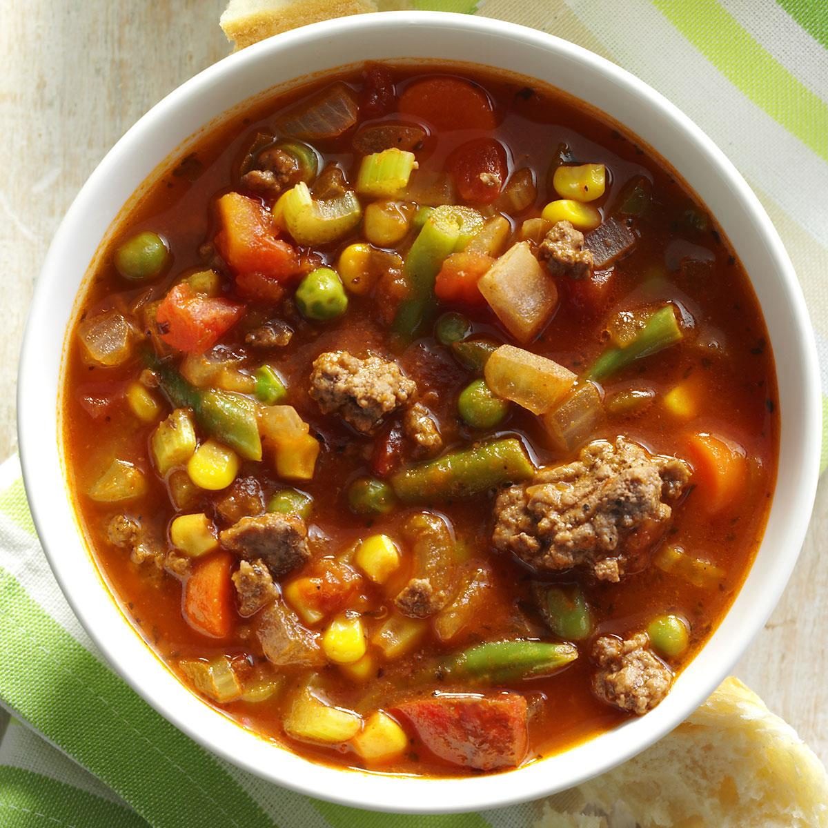 This zesty ground beef and vegetable soup is flavorful and fast to fix. It makes a complete meal when served...
