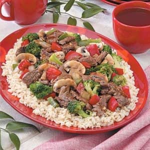 This savory stir-fry showcases tender slices of beef, while colorful carrots add crunch. For devoted meat-and-potatoes fans, replace the rice...