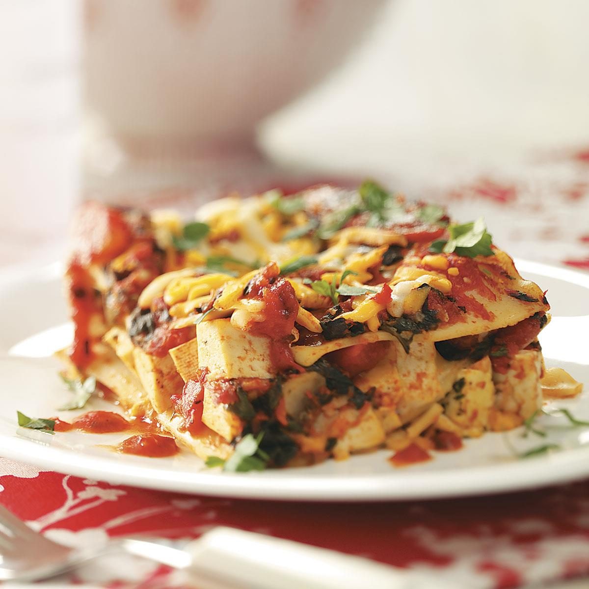 This easy tofu lasagna recipe puts a healthier spin on a classic. Tofu in the ricotta cheese blend adds protein...