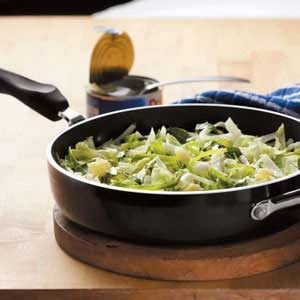 This speedy cabbage dish picks up nice flavor from the onion and soy sauce.