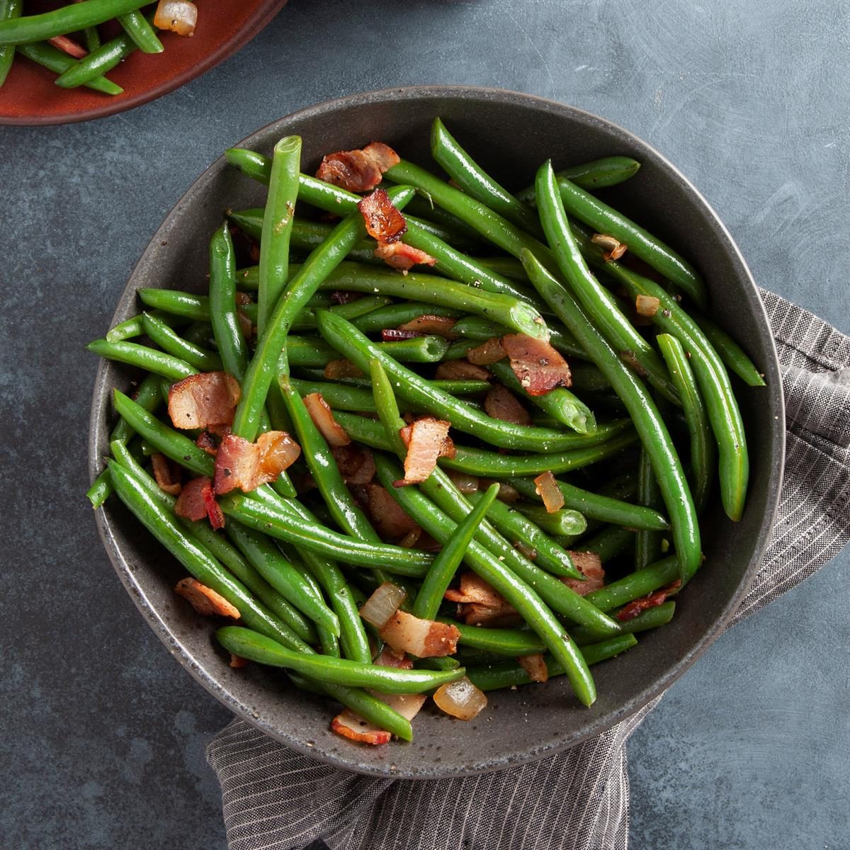 Green beans with bacon and onions make such an easy side dish. Fresh beans lend a crisp, bright flavor to...