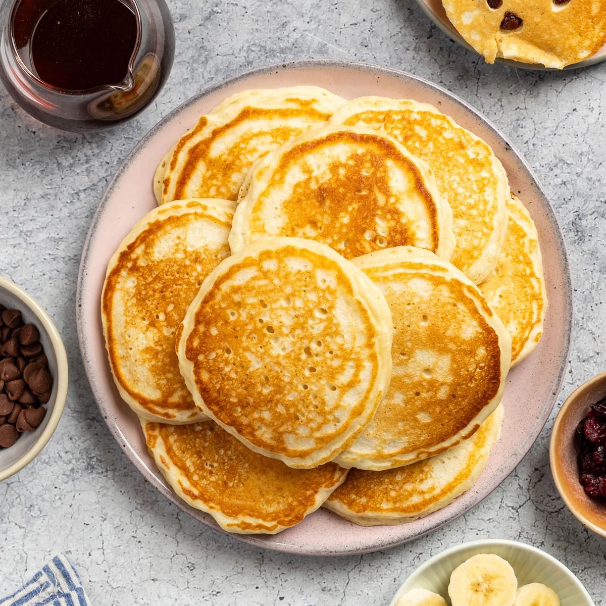 Our yogurt pancakes have a special ingredient that makes them extra fluffy. That's right; it's the yogurt, and it reacts...