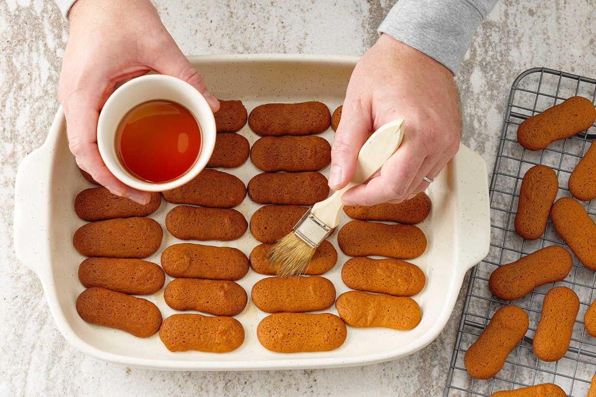 For traditional tiramisu, you might rely on a package of pre-made ladyfingers. Not here! Instead, you’ll be making a batch of pumpkin and spice-flavored cookies.