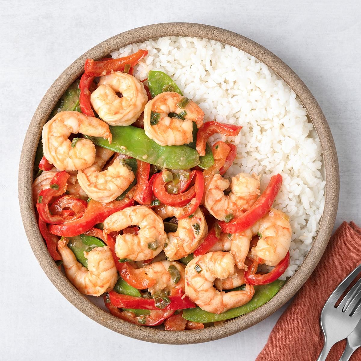 Juicy shrimp, crisp veggies and a silky, spicy sauce? This Thai shrimp stir-fry is a wok-and-roll winner.