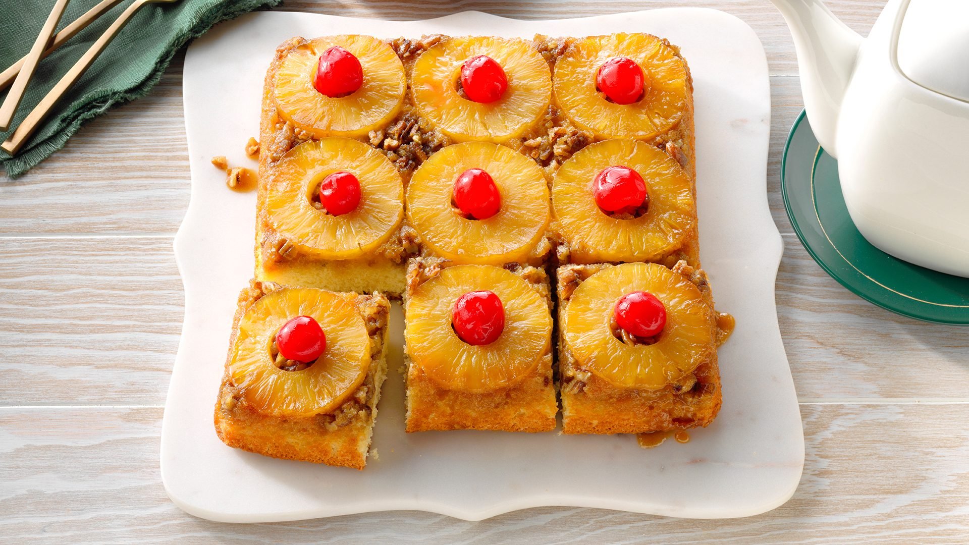 There’s something about this upside-down cake’s soft layer of sponge and gooey pineapple glaze that transports us to holiday heaven.