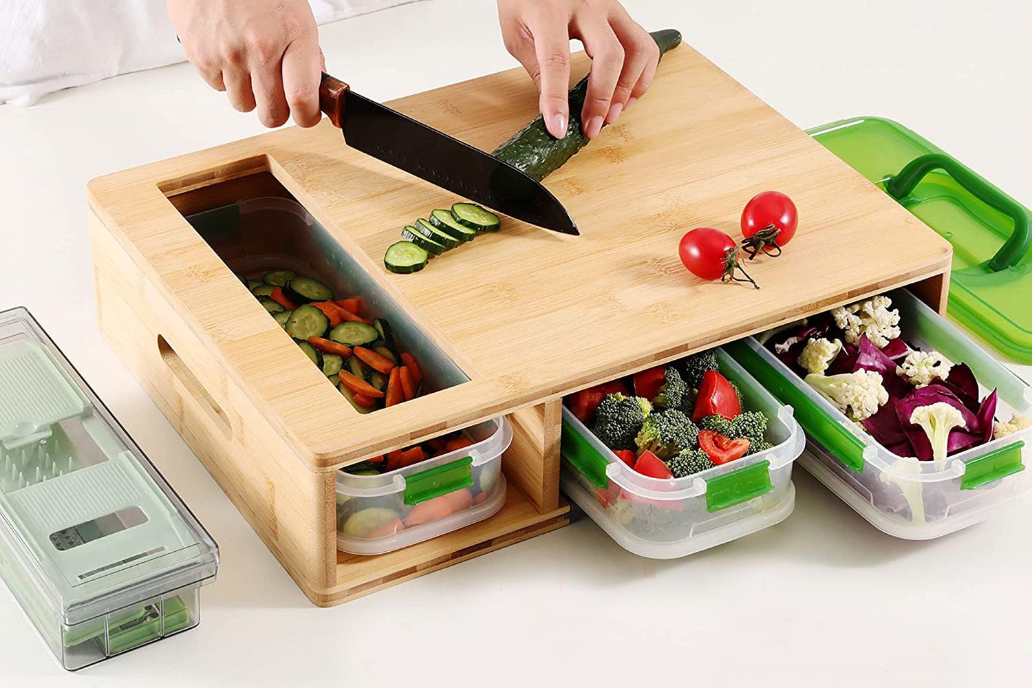 This bamboo meal prep cutting board is the gadget you never knew you needed.